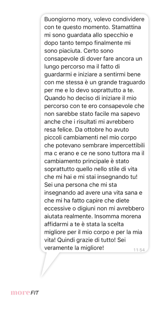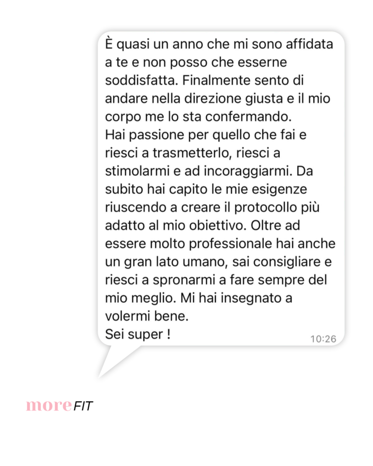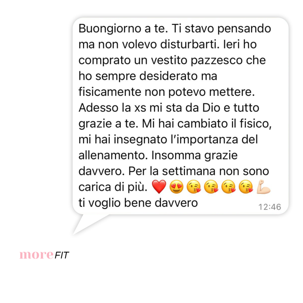 Recensioni Oltre 200 donne hanno scelto di unirsi a MoreFit! I vostri feedback Ogni tuo risultato, è una grande soddisfazione per me! Adesso è il tuo momento! Scopri tutti i programmi di MoreFit INIZIA ORA Adesso è il tuo momento! Scopri tutti i programmi di MoreFit INIZIA ORA